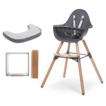 La chaise Evolu 2 de Childhome, le set de pieds longs + repose-pieds et la tablette ABS avec napperon dans un pack avantageux.