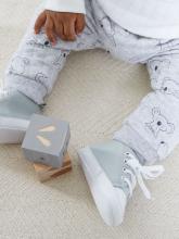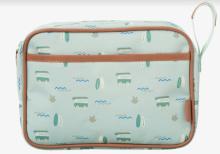 La trousse de toilette avec motifs "Surf Boy" est fabriquée dans un tissu 100 % recyclé, facile à laver.