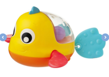 Bébé n'est pas tout seul dans son bain ! Le petit poisson de Playgro nage dans tous les sens lorsqu'on tire sur sa queue.