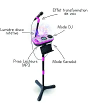 KIDI SUPERSTAR DJ STUDIO Micro interactif 9 en 1 avec table de mixage pour créer et enregistrer tes propres compositions. Il joue la mélodie sans les paroles...