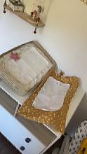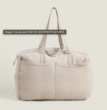 Déjà acheté. Sac de maternité en coton orné de rayures sur fond clair.