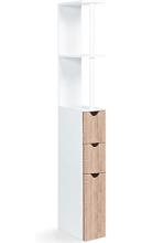 IDMarket - Meuble WC étagère Bois Willy 3 Portes Blanc et hêtre