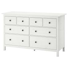 HEMNES Commode 8 tiroirs, teinté blanc, 160x96 cm. Cette belle commode au design traditionnel a été fabriquée en bois issu de sources gérées durablement. Elle est équipée de tiroirs coulissants et silencieux.