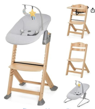 Kinderkraft Chaise Haute Bébé ENOCK, 3 en 1, avec Coussin en Bois Naturel, Évolutive, Réglage, Gris