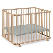 Parc bébé Lucilee. Rectangulaire 76x97 en bois. Réglable en hauteur sans outils sur 3 positions, pliant. Idéal pour les voyages