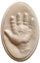 Empreintes de la main droite et du pied gauche de Tristan effectuées le 14 mars 2024