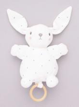 Il est tout beau et tout doux ! - Peluche lapin - Toucher doux - Anneaux à tirer pour lancer la musique- Hauteur : 23 cm environ