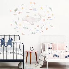 La plus rêveuse des baleines est prête à flotter sur vos murs! Les couleurs douces et neutres de la baleine sadaptent à la plupart des intérieurs et lensemble contient de nombreux éléments pour concevoir votre propre monde sous-marin apaisant.