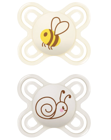 The MAM Perfect pacifier with its unique, extra-thin, flexible teat shape is designed to reduce the risk of misaligned teeth and supports healthy dental development.