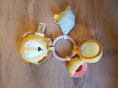 Deze leuke Activity Ring van Trixie is het perfecte item om jouw kleintje urenlang bezig te houden. De ring is gemaakt van kunststof en heeft 4 handige speeltjes eraan. Niet alleen zit er een leuke Mr Lion hoofd aan om mee te knuffelen, er is ook een leuk blaadje, een bijtring en een spiegeltje. De witte ring is perfect om hem mee aan de box, wieg of maxicosi te bevestigen. Ideaal voor thuis en onderweg!