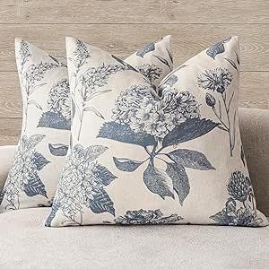 Amazon.com: Foindtower Set of 2 Linen Floral Vintage Throw Pillow Covers Neutral Accent Print Decorative Cushion Covers Farmhouse Boho Home Decor for Sofa Chair Couch Bedroom Living Room,18×18 Inch,Blue : Home & Kitchen