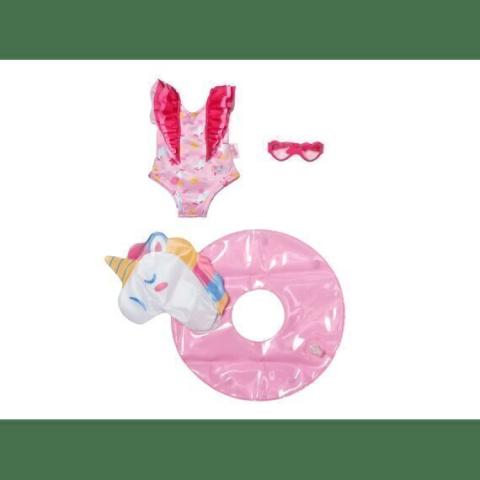 Zon, waterpret en eenhoornmagie? Deze zwemset met unicorn-thema is alles wat je Baby Born-pop nodig heeft voor een spetterend dagje aan het zwembad of op het strand! De kleurrijke badpakoutfit zit vol fantasie en is perfect afgestemd op poppen van 43 cm. Met het schattige eenhoornmotief en bijpassende accessoires zoals een zwembrilletje en handdoek, is je pop helemaal klaar om te plonzen of te zonnebaden. Laat de zomerse rollenspelen maar beginnen!