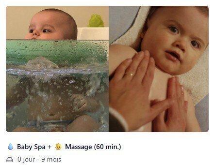 Spa & Massage relaxant pour les bébés jusqu'a 9 mois. Durée 60min.