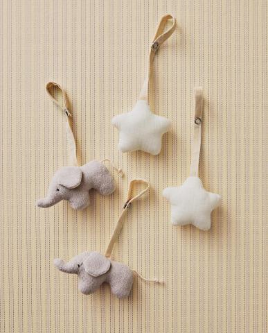 Wieghangers in de vorm van een ster en olifant gemaakt van katoen, inclusief een rammelaar aan de binnenkant en een koord voor het ophangen. Ze worden geleverd in een tas. - Nieuwe items - KINDERKAMER EN BABY'S - BABY’S | Zara Home België / Belgique