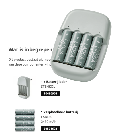 Lader + 4 batterijen van 2450 mAh, zit samen in een pakket.