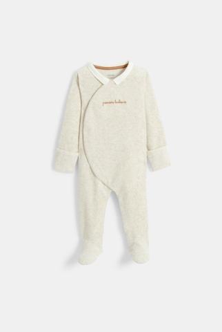 Het authentieke en altijd hippe corduroy maakt deze eendelige pyjama heerlijk warm. Een look als een engeltje en comfortabele nachten met een heerlijk zacht gevoel. Drukknoopsluiting aan de voorkant om uw kind op de rug aan te kleden.