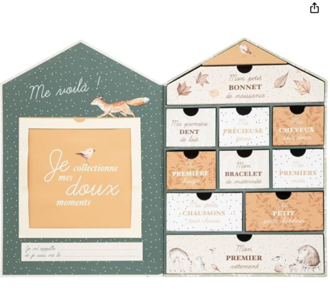 en toute liberté. Il est possible d'ajouter toutes vos envies cadeaux et de recevoir les dons directement sur votre compte. Avec les dons reçus, vous êtes alors libre d'aller acheter vos produits (comme ce 'Boite à premiers souvenirs - Atmosphera Forest Birth Box