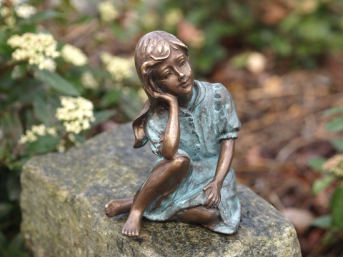 Klein bronzen meisje dat graag wil komen wonen in onze tuin.