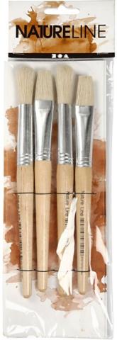 Habitué aux travaux lourds - brosses à poils avec manche court laqué - parfait pour les petites mains Lot de 2 brosses rondes et 2 plates