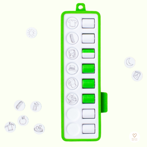 Aanpasbare tweezijdige planner om zelf aan te duiden welke taakjes je reeds afwerkte of nog moet doen.