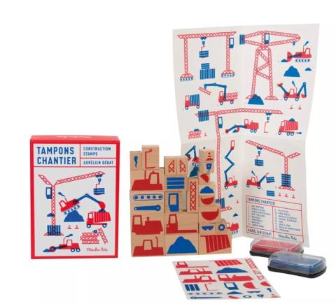 Livres, jeux créatifs et DIY design : Coffret 23 tampons Chantier - Dans la ville par Moulin Roty à découvrir avec Les Enfants du Design. Retrouvez toutes nos références de mobilier design et de décoration pour chambre d'enfant.