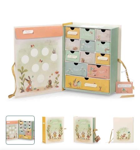 en toute liberté. Il est possible d'ajouter toutes vos envies cadeaux et de recevoir les dons directement sur votre compte. Avec les dons reçus, vous êtes alors libre d'aller acheter vos produits (comme ce 'Coffret de naissance / Geboortekistje Moulin Roty trois petits lapins