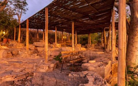 Op naar het hoogtepunt van de reis: Etosha National Park! Deze lodge/campsite ligt aan de voet van de dolomietheuvel en door de schaduw van de mopane-bomen, is Halali Camp één van de favoriete drinkplaatsen van de dieren in Etosha National Park.