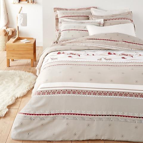 Bedrukt dekbedovertrek in katoen TYROL. Winterse motieven voor dit sober en elegant bedlinnen.