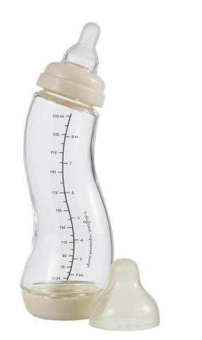 De glazen anti-koliek S-fles is gemaakt van zeer sterk en duurzaam borosilicaatglas. Dit glas is lichter dan normaal glas, veilig en duurzaam in gebruik. Door het stevige glas worden krassen of beschadigingen, waarin bacteriën zich kunnen nestelen, voorkomen. Hierdoor heeft de glazen S-fles een extra lange levensduur. Het stevige glas is stootbestendig, maar niet onbreekbaar.