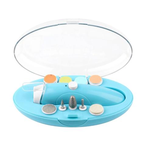 Veilige en stille Youha® baby manicure set met 9 opzetstukken en LED-licht. Ideaal voor pijnloos nagels vijlen zonder risico. Ergonomisch ontwerp en draagbare opbergbox.