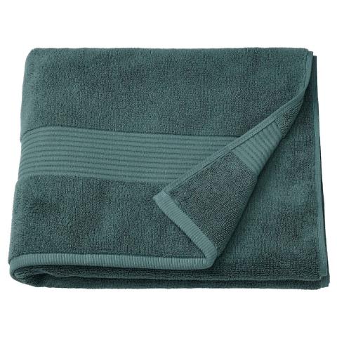 FREDRIKSJÖN badhanddoek, grijsturkoois, 70x140 cm Een dikke, grijs/turquoise handdoek met een klassieke geweven rand voor een luxe gevoel. Wordt zachter met iedere wasbeurt. FREDRIKSJÖN handdoeken zijn verkrijgbaar in verschillende groottes, maar ze zijn allemaal van 100% katoen gemaakt.