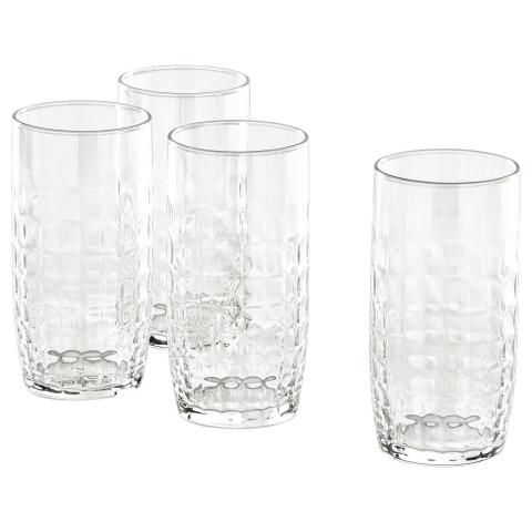 FRÖJDA glas, helder glas, 40 cl Hoge, rechte glazen met goed zichtbare inhoud. Perfect voor drankjes met ijs, of voor kleurrijke toetjes. Prima te combineren met ander facetgeslepen glas uit de collectie om de tafel in een uniforme stijl te dekken.