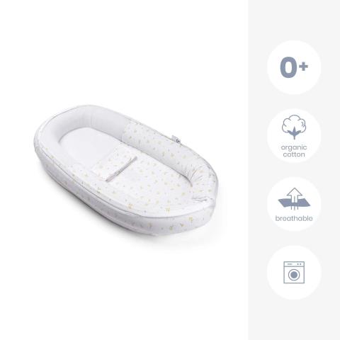 De doomoo Cocoon is het perfecte nestje voor je baby om te ontspannen en te slapen. De Cocoon is een op maat gemaakte veilige ruimte die baby een veilig gevoel geeft. Het is een van de veiligste nestjes op de markt en hij heeft een veiligheidsgordel en 3D-materialen rond het hoofdje. De hoes is van biologisch katoen en wasbaar.