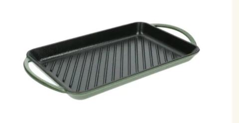 Grillpan, gietijzer, groen, 33 x 22 cm. Geschikt voor gebruik op gas, elektrisch, inductie, halogeen, keramisch, barbecue en in de oven tot 300 °C
