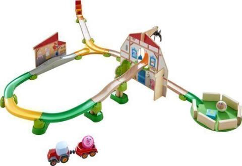 Haba - Haba Kullerbü Geluidspeelbaan Boerderij. Schaap Selma en varken Simon zijn uit hun stal ontsnapt en zoeven door het weiland en onder de...