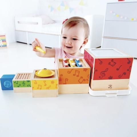 Zet de toon met de Hape Stapelbare Muziekset! Dit muzikale speelgoed bestaat uit een kleurrijke set met verschillende instrumenten die je kindje kan stapelen en uitproberen. Van een trommel tot xylofoon, en zelfs een tambourijn: elk stuk maakt vrolijke geluiden die je kleintje helpen bij het ontwikkelen van zijn gehoor en ritmegevoel. Het is de perfecte manier om de muzikale interesse van jouw kindje te prikkelen en tegelijk de fijne motoriek te verbeteren. De onderdelen zijn makkelijk vast te houden met kleine handjes en zorgen voor uren muziekplezier.