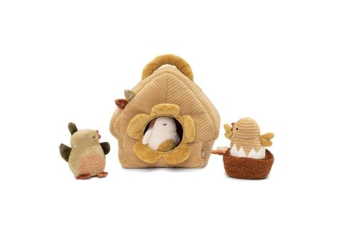 De set bevat drie schattige vogeltjes – Lulu, Chirp en Feather – die verstopt kunnen worden in een groot vogelhuis. Dit huis is prachtig versierd met blaadjes, heeft een speelse bloemenopening en een knispergeluid voor extra speelplezier. Lulu is een kleine ontdekkingsreiziger die altijd op zoek is naar een nieuw avont