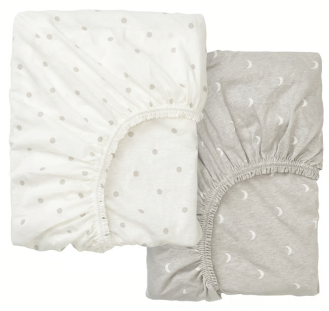 Met wat dromerige fantasie zijn deze hoeslakens versierd met volle maantjes en maansikkeltjes, ideaal voor een goede nachtrust. Fingers crossed ;)