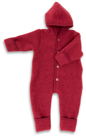 A must-have for all parents: the baby fleece hooded overall made of 100% organic virgin wool keeps baby snuggly and warm all over. The cuffs at legs and arms can be conveniently folded over the little hands and feet. This way, the offspring is always per…