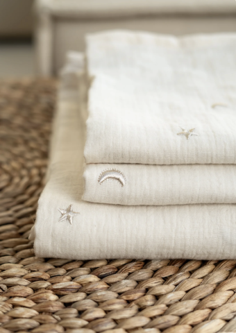 en toute liberté. Il est possible d'ajouter toutes vos envies cadeaux et de recevoir les dons directement sur votre compte. Avec les dons reçus, vous êtes alors libre d'aller acheter vos produits (comme ce 'Hydrofiele doek Maan en Sterren