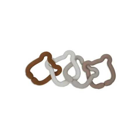 Leuke siliconen speelgoed ringen van Jollein in de vorm van teddy beren. Maak er een ketting van om bijvoorbeeld een speeltje vast te maken aan de kinderwagen. Of hang het favoriete speeltje van je kindje aan het autostoeltje. Er zijn vele