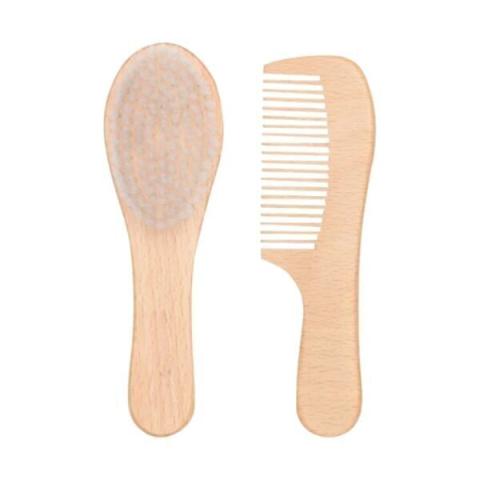 Kam en borstel uit beukenhout, zacht voor de hoofdhuid.