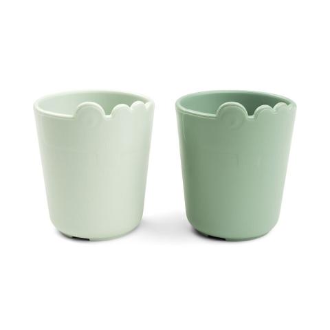 Croco is sneaking by to say hello! A perfectly sized set of Kiddish mini mugs that are easy for little hands to grasp. The shatterproof cups are designed for the kids' everyday meals and suitable for the microwave and dishwasher.The recyclable kids cups are made in Denmark. After countless family meals, parties and pic