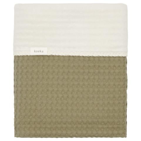 De knuffelzachte en comfortabele Koeka wiegdeken Wafel Amsterdam met cotton fleece voering in de kleur groen houdt je kleintje warm en is geschikt voor alle 4 de seizoenen.