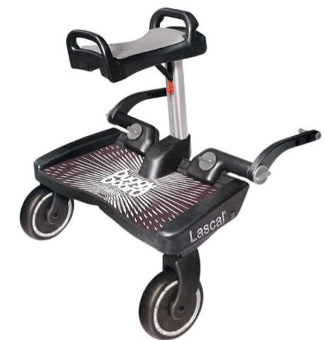 Een meerijdplankje om aan onze buggy vast te hangen. Zo kan Korneel meerijden wanneer Boris in de buggy zit.