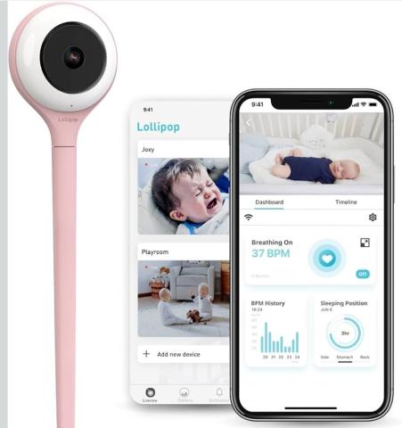 Lollipop Baby Monitor (Cotton Candy) - with Contactless Oxygen Monitor (No Extra Sensor Required, Subscription Service), Sleep Tracking and Real Cry Detection, Smart AI WiFi Baby Camera : Amazon.nl: Baby Products