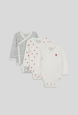 Lot de 3 bodies manches longues imprimé en coton BIO GOTS ECRU pour bébé BOUT'CHOU