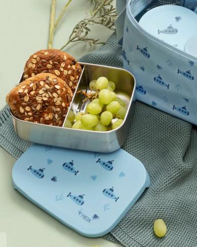 Een schooldag is extra leuk met een Fresk lunchbox!Deze stalen broodtrommel is lekker stevig en de verdeling in twee compartimenten maakt hem extra praktisch. Bovendien zorgt de stalen bodem ervoor dat er geen kleur of geur van de inhoud wordt opgenomen. De flexibele siliconen deksel is gemakkelijk te openen door klein