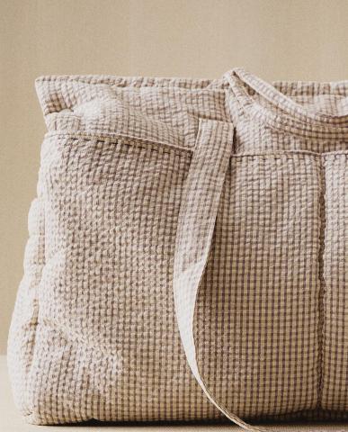 Maternity bag made of seersucker cotton with a gingham design.