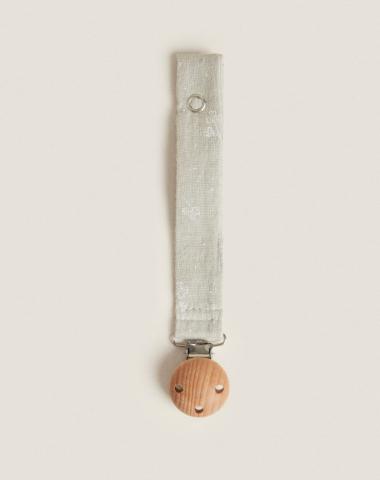 Katoenen mousseline speenkoord met klavertjesprint. Wordt met een clip aan babykleding bevestigd. | Zara Home België / Belgique